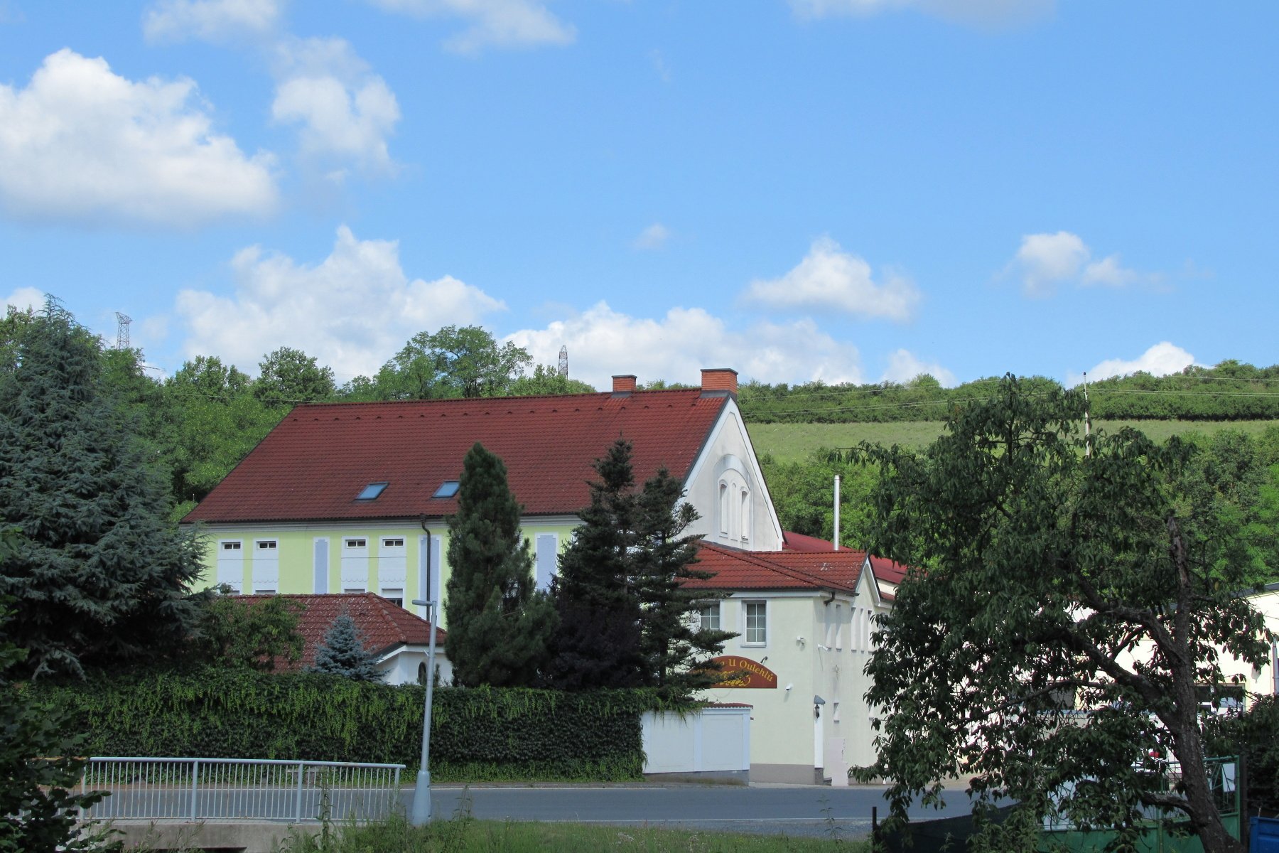 Než se Ota přezul do bot pohodlnějších na řízení, já našla cestu ke brodu. Máme štěstí, vede okolo sokolovny a okolo mlýna, kam jsme se podívat už nešli. Také vede okolo hospůdky U Stiborů, kde jsme se cca před 1,5 hodinou stavěli. Takže o nic nepřijdeme a ještě máme šanci koupit si dobré pivo.