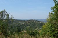 Pokračujeme po Hradském hřebeni přes vyhlídkové místo, odkud vidíme převážně západní část města. Na druhou stranu stačí jen trochu popojít, abychom viděli další nedaleké kopečky a pod námi Pilské údolí s říčkou Bělá. Tam někde by měla být cesta, po které se budeme vracet.