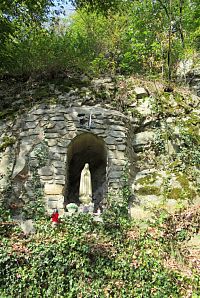 Naučná stezka nás opět odvádí od silnice. Jdeme vzhůru do kopečka po kamenité cestě. Je to strmé, musíme být opatrní, klouže to. Vede to podle skalisek, kousek pak v prudkém svahu. Tyto cesty nemám rada, vždy mám strach, že sklouznu kamsi dolů. Ale přežila jsem, nespadla jsem a za chvíli jsme opět u amfiteátru. Před tím jsme však viděli pod kopcem zdejší sportovní areál.