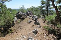 Když jsme se dost vynadívali, chystáme se na návrat. Podle mapy by se skála měla nechat přejít a pokračovat po neznačené cestě. Zkoušíme to. Vydáváme se po nenápadné pěšince. Zpočátku je cesta méně schůdná, vede mezi skalisky, pak klesáme po štěrku, to se mi zdá ještě náročnější. Není to však daleko. Vpravo už vidíme pěšinu a hezkou rovinku. Za ní už vede modrá turistická cesta k našemu autu. Bylo to krátké, bylo to náročné, bylo to super.