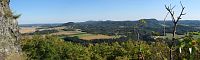 Hrad se nechá ze dvou stran částečně obejít, dostáváme se na místo s pěknými výhledy. Vidíme Ralsko, Ještěd, Bezděz, Housku, Říp, Růžovou horu. Tak to tvrdil Ota. Mně nezbývá nic jiného, než mu věřit.