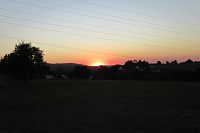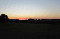 Když Ota přišel, jdeme večeřet. Ochlazuje se, ale západ slunce je tak hezký, že zůstáváme ještě venku. Dokonce i potom, když jsou na západě červánky, spíš asi odraz zapadajícího slunce. Moc hezky se to pozoruje. Celou idylku trošku ruší vůně venkova. Kus od nás je na poli složená fůra čerstvého hnoje. Naštěstí je téměř bezvětří, tak ho cítíme jen občas, když to trošku foukne. Pořád je to lepší než chemické smrady.