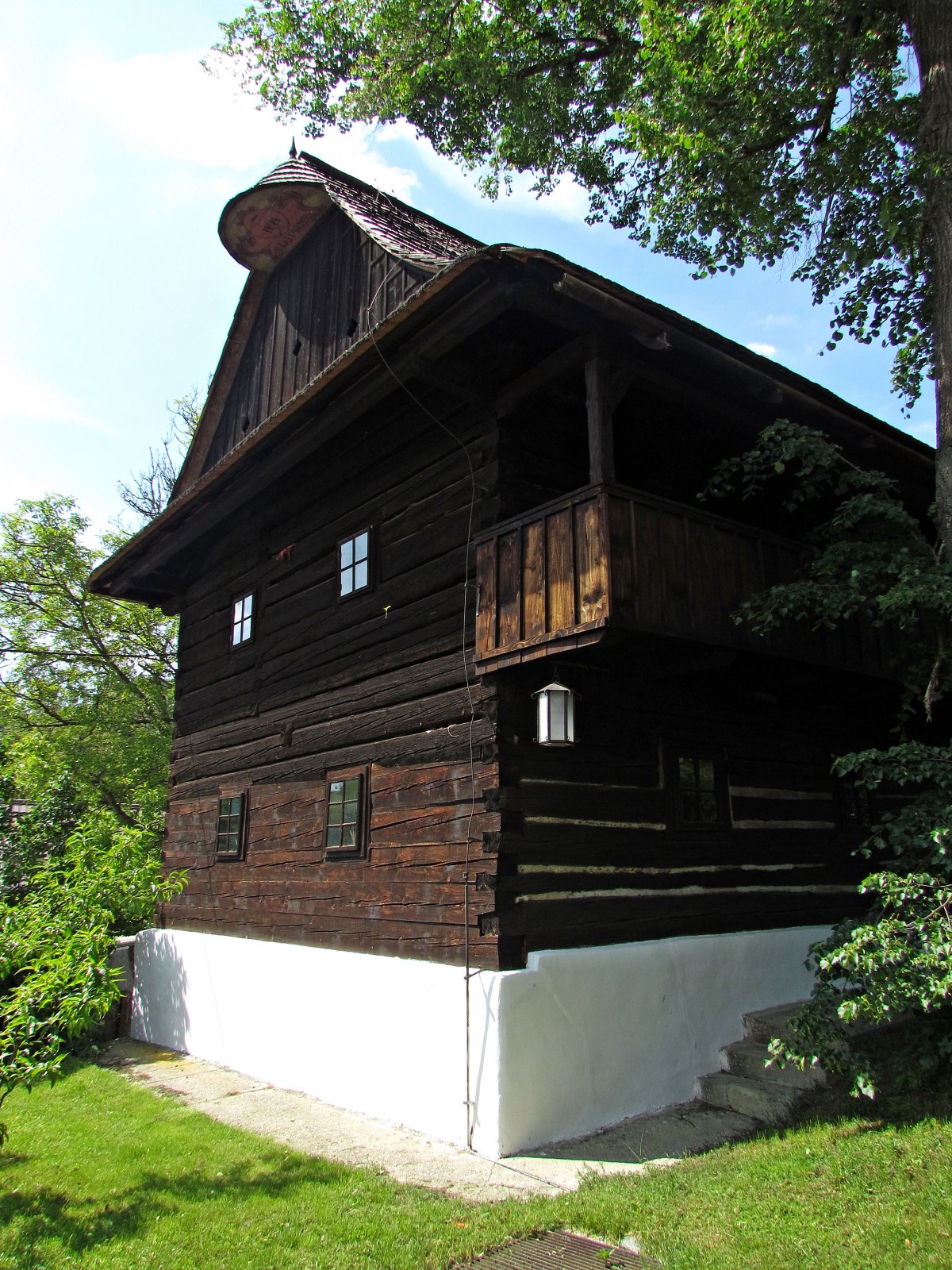 Dále se dozvídáme, že budova fojtství byla vystavěna roku 1748 a bylo na ni použito 170 let staré dřevo. Stav je díky konzervaci velmi dobrý, ale – jak nám na závěr ukázala venku – dřevo začaly uždibovat sršni a po jeho odrýpnutí zůstavají světlé fleky.