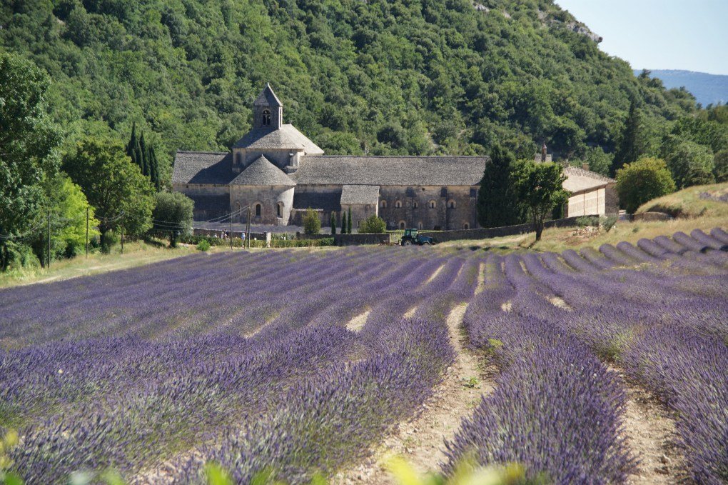 Naším posledním cílem dne byl krásný románský klášter Sénanque. Možná nejfotogeničtější, nejfotografovanější a na pohledech nejprodávanější stavba celé Provence za návštěvu jistě stojí, ale musíte počítat s tím, že tady je to skutečný Václavák (a to jsme sem schválně přijeli až kolem 17. hodiny, kdy je turistický nával již podstatně menší). Tento cisterciácký klášter pochází z 12. století a pyšní se zejména úchvatnou křížovou chodbou. My ale na prohlídku nešli. Jednak kvůli času a hlavně kvůli tomu, že na rozdíl od loňského volně průchozího Thoronetu se tady za stejnou cenu musíme přidat k výpravě s průvodcem, který používá pouze francouzštinu, a v ruce u toho držíte zkrácený text na letáčku v angličtině. Takže jsme pouze pořídili nějakou tu fialovou exteriérovou fotodokumentaci, pořídili pár suvenýrů, skočili na toaletu a koupili si z automatu (nikde jinde jsme se s tím nesetkali) malý kelímek se studenou vodou, ve které byl rozpuštěn klasický vitacit (i ten nerozpuštěný cukr tvořil na dně papírového kelímku onu známou vrstvu). Ale bylo to osvěžující a nekupte to za 50 centů, že ano ...