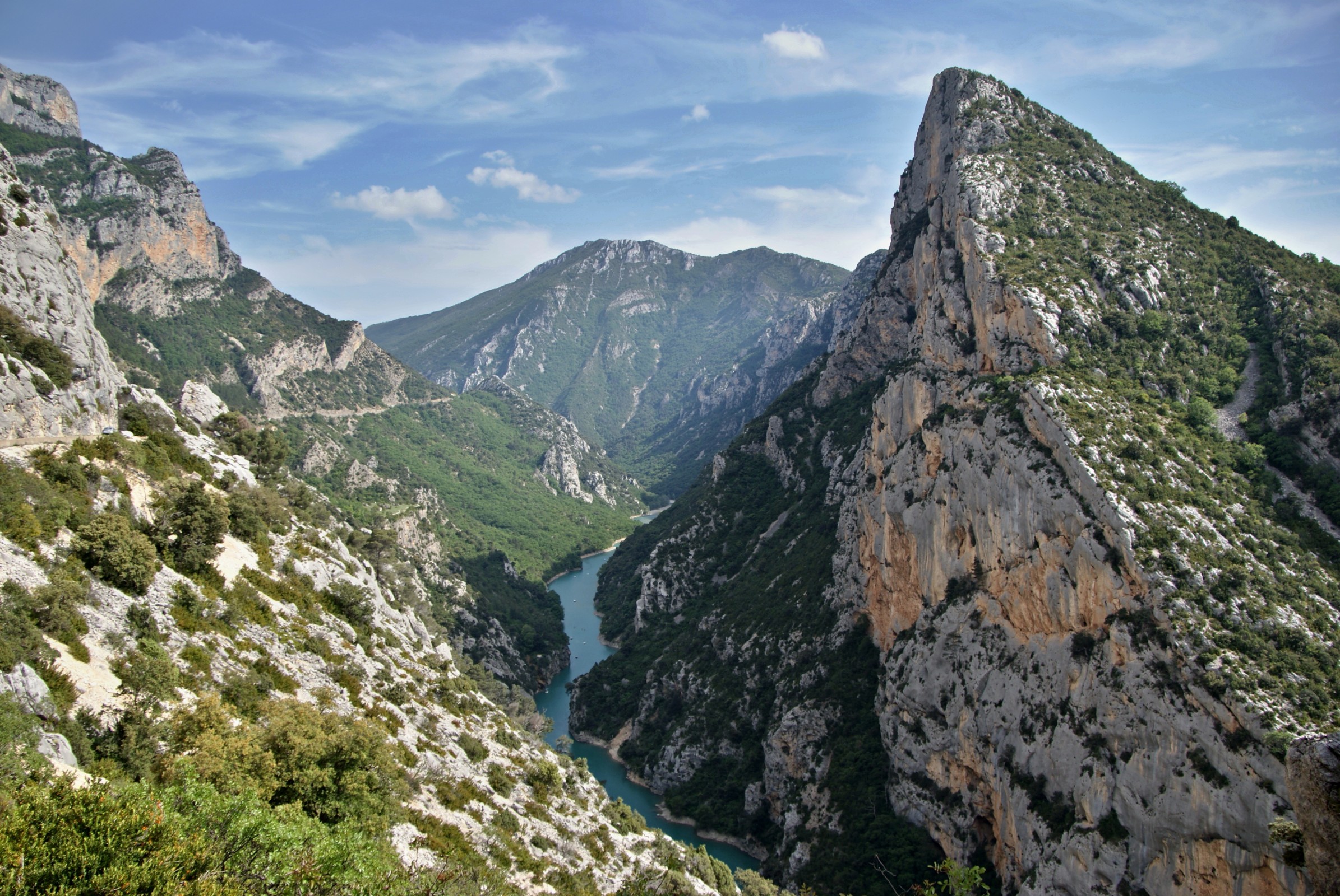 A před námi je jeden z – alespoň mnou nejočekávanějších - klenotů celé naší dovolené. Tím je až 700 metrů hluboký, v nejužším místě 6 metrů široký a 21 kilometrů dlouhý kaňon řeky Verdon. Možná vůbec největší kaňon starého kontinentu se zde nazývá Velký (Grand canyon du Verdon), leží na hranici Provensálských a Přímořských Alp a končí přehradním jezerem Lac de Sainte-Croix. Je průjezdný lodí nebo po silnici, klikatící se nad ním a vybavenou různými odpočívadly a vyhlídkami, nebo průchozí po úzké stezce. My dojedeme ale, bohužel, jen do jeho poloviny, takže tu nejzajímavější část s nejhlubším místem a mostem Artuby ani neuvidíme. Jirka už je unavený a nechce se mu dál kličkovat mezi skalními velikány. Celkem ho chápeme, zvláště když jeho navigace příliš nesouhlasí s mou mapou (tentokrát i později se ale ukáže, že moje tištěná a domalovaná mapa byla podstatně přesnější a v ní nalezené směry kratší a přímější) a – ač neradi – souhlasíme s návratem k Moustiers Sainte Marie a cestě na ubytování.