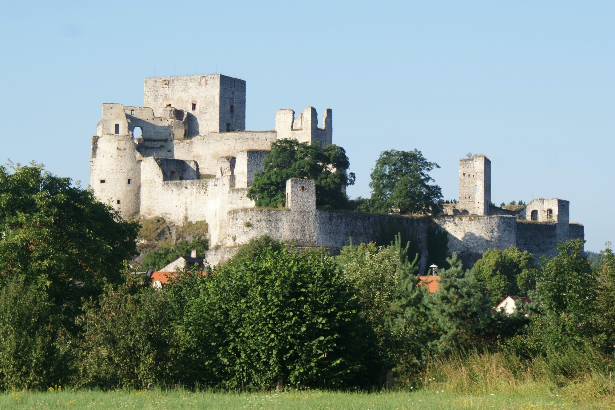 Druhou – a současně závěrečnou - část cestopisu, pojednávajícího o naší „mírně uplakané“ výpravě po jihozápadních oblastech naší země, začínám ještě stále v Čechách západních. Přesněji ve chvíli, kdy se dovedně ukrýváme za sítí branky na fotbalovém stadionu v obci Rabí. Je časné středeční ráno (4.8.2010) a já odmítám opustit stan, protože mám pocit, že na něj svítí slunce a nechci být nepříjemně zklamán. Když vylezu, začínám ztrácet svou pevnou Víru ateisty. Někdo nahoře mě má rád, protože mi snad bude umožněno alespoň jednu z milovaných zřícenin hradů vidět za hezkého počasí. A opravdu. Počasí vydrží po celou prohlídku (z různých možností jsme zvolili vrchol věže - donjonu - a sklepení s hladomornou, a ještě jsme za 50,- Kč vlezného obdrželi 3. razítko NPÚ do sbírky). Prostě pohodička, popít, popapkat, pokoupit pohledy, potom pěkná procházka po (a dál už to s tím pé opravdu nejde) židovském hřbitově. Kdysi nás ve škole učili, že Rabí je 2. největší hrad ČSSR (po Spišském hradu). Dnes už víme, že to není až tak úplně pravda, ale určitě tato, na vápenci usazená, mohutná zřícenina stojí za pozornost.
