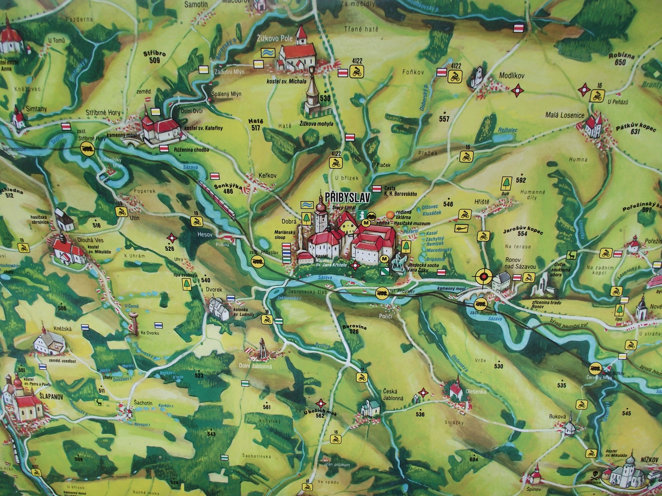 Ráno se budíme do krásného slunečního rána. Rychle pár fotek oněch božích muk, snídaně u Alberta a hřbitovní kostelík Nejsvětější Trojice, na kterém se Santini podepsal zejména trojúhelníkovým oknem sakristie. Pak již náměstí s radnicí, morovým sloupem a zajímavou budovou hotelu Veliš se secesní fasádou akademického sochaře Vilíma Amorta. Poté nás již čeká farní kostel sv. Prokopa, založený okolo roku 1270. V letech 1521 až 1560 byl přestavěn do podoby pozdně gotické a zajímavou stavbou zůstal dodnes. Jako obvykle jsme využili končící mše a nacpali se dovnitř na „prohlídku“. Proto mě velice překvapila zdejší varhanice, která mi prozradila, že celý kostel bývá volně přístupný celý den … a není prý na Vysočině zdaleka jediný. Viděl jsem v životě hodně vybílených kostelů, takže - přes přítomnost ostrahy – považuji za zázrak, že pozdně gotická plastika Madony z II. poloviny 15. století i pozoruhodná moderní křížová cesta akademického sochaře a jáhna Karla Stádníka zůstávají stále na svém místě. Během prohlídky kostela otevřeli zdejší infocentrum, a tak nabrat nějaké vědomosti i materiály, nakoupit pohledy, podívat se na staré gramofony a pokračovat dál. A teď už také vím, ve které budově na náměstí provozovala své knihkupectví dlouhodobá ikona ODS a prezidentská kandidátka Miroslava Němcová.
