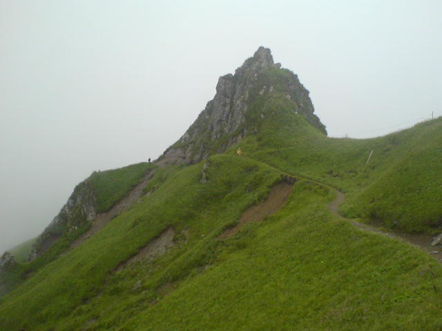 Popis treku: Z městečka Le mont Dore jsme se vydali ještě pár km po silnici, která končí slepou kličkou u lyžařského areálu a dolní stanice kabinkové lanovky. Odolali jsme svodům této vymoženosti a nahoru se vydali samozřejmě po svých. Vzhledem k nízké viditelnosti se výstup zdál být monotónní, v tu dobu jsme ještě nevěděli, jaké výhledy a uspokojení nám přinese cesta dolů.Potvrdilo s etaké to, na co varoval průvodce: na vrcholu nás zahltil dav, který vyskákal z lanovky a mnohem čerstvějšími a energičtějšími kroky než my doskákal po dřevěných schodech na vrchol, kde jsme ovšem viděli všichni to samé - dokonalou mlhu.