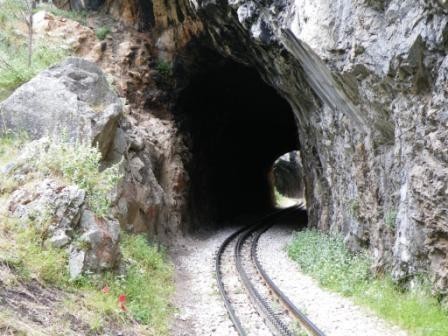 Řecko, úzkokolejka-přechod na zaubačku v kaňonu Varaikos autor: Traper