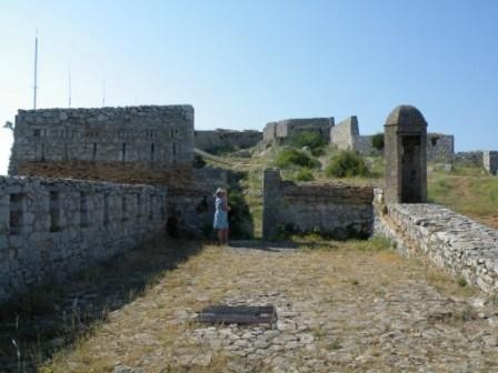 Ráno jsme definitivně dobyli pevnost Palamidi (vstupné 4€). Je hodně rozsáhlá. Důležité je neminout na začátku vpravo pravděpodobně bývalá kasárna pro ubytování posádky, vypadající jako samostatný hrad. Nejzajímavější je pak vzadu další, jakoby samostatný hrad s terasami, schodišti, kaplí, a tmavou kobkou bez okna se sníženým vstupem, snad hladomornou. Horní část vlevo od vstupní brány je nejvyšší a tomu I odpovídá panoramatický výhled na obě strany poloostrova. Před odjezdem jsme ve městě ještě z pramenu(N37,56475 E22,84030) doplnili pitnou vodu.