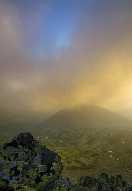 Ráno vstáváme o hodinu dříve, než předešlý den a jdeme, bez holek, východ sledovat z vhodnějšího místa – Custura Bucurei (2370). Je jasno, na cestu nám svítí měsíc a po chvilce je i příjemně teplo. Jakmile vyjdeme do sedla Curmatura Bucurei, uvědomujeme si, že východ bude nezapomenutelný. Času máme do východu dost, inverze je docela vysoká a tak se rozhodneme, že si vyjdeme na již zmíněný vrchol. Dobře jsme udělali. Sedlo po chvilce zavalila mlha, která se už nerozplynula. Na vrcholu stihnu udělat pár fotek s jasnou oblohou. Další už nestihnu, protože inverze zavalila i nás. Chvíli po nás vyšlape nahoru jeden Rumun. Tuším, že první turista v Rumunsku, pokud nepočítám ty z tábora. Vypadá to, že mlha se jen tak nerozplyne. Kolikrát jsme to měli chuť vzdát a jít si ještě na chvíli lehnout, ale nakonec jsme zůstali a stálo to zato. Nebyl sice červený východ slunce, slunci stejně překážela mohutná hora, přesto roztrhané mraky s modrou oblohou a božským klidem byly úžasné. V táboře na nás čeká nejen snídaně, ale i hladová liška. Světlo na focení je lepší než předešlý večer, a tak beru foťák, kousek jídla a lákám lišku k sobě. Čekal jsem, že půjde blízko, ale že by mi žrala z ruky, to jsem vážně nečekal. Po snídani vyrážíme na nejdelší okruh po nejvyšších vrcholcích Rezatu. S Robikem jdeme rychlejším krokem a při čekání na zbytek si užíváme výhledy. Viděli jsme Hory, kam až oko dohlédne. Kamenité, travnaté, lesnaté, strmé i hezky zaoblené. V Rumunsku si určitě každý přijde na své. První ze dvou hlavních cílů dnešního dne je nevyšší hora pohoří nesoucí název Peleaga (2509). Podle náročnosti bych ji jako nejvyšší vůbec neoznačil. Asi jsem byl v euforii z nádherného okolí. To druhý cíl, druhá nejvyšší hora Retezatu – Papusa (2508) mi přišla náročnější. Nejen výstupem ale i sestupem. O to sladší byla poté odměna v podobě malého travnatého místečka ideální k lehnutí. Pokračujeme kolem Custury (2457), od které se začíná pomalu měnit charakter hor. Už kameny přešly v trávu a začíná se více objevovat kosodřevina. Potkáváme další 2 bači s desítkami ovcí a několika psy. Lesem sestupujeme k autu, dáváme malou přestávku a vracíme se zpátky do tábora. Třešničkou dne je pozvání od horské služby na polívku*. Poctivá polívka s kusy masa a zeleniny byla výborná. Přátelští Rumuni nám nabídli, že Robik a já můžeme přespat u nich v chatce. Nabídky využijeme, a tak si jdeme brzy lehnout do měkkého. Na Simpsny jsme nezapomněli.