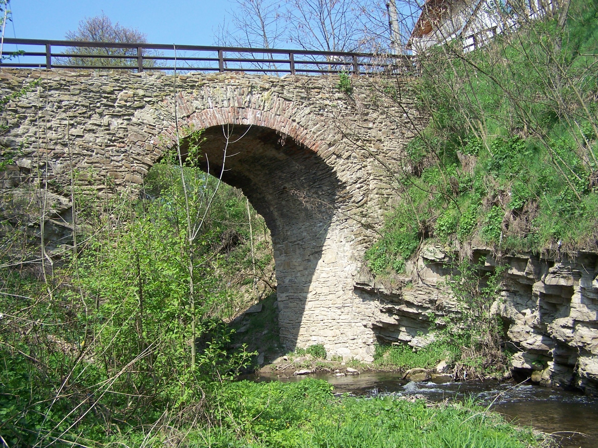 Další pozoruhodnost -.unikátní technická památka – kamenný most s jedním obloukem s rozpětím 8 m, který se klene ve výšce 10 metrů nad roklí protékanou říčkou Bobravou. Tři metry široká mostovka je zakřivená a v podélném profilu stoupá směrem k městskému centru. Po proudu Bobravy se vrátíme zpět k silničnímu mostu.