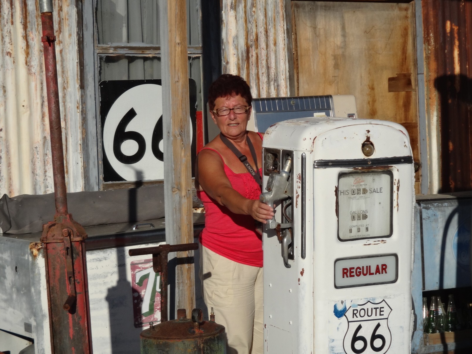 Od Grand Canyonu si zajíždíme ještě na legendární Route 66, a to do Hackbery. Tato silnice spojovala východ ze západem USA a vedla z Chicaga a Los Angeles. Vedla přes osm států z Illinois přes Missouri, Kansas, Oklahomu,Texas, New Mexico, Arizonu do Kalifornie. Byla otevřena v r. 1926 a měřila 3940 km. Když byla nahrazena soustavou dálnic, byla v r. 1985 vyřazena z užívání. Některé její úseky se použily v nové dálnici. Nadšenci a milovníci "Matky cest" nejen z USA usilují o to, aby byla znovu vzkřísena, je vlastně využívána jako muzeum i turistická atrakce. Muzeum Route 66 je ve městě Kingman - srdce silnice. My jsme navštivili část v Hackbery, kde jsou zachovány staré pumpy, stará automobilová opravna, budovy a mnoho věcí, které se k této cestě váží. Vcházíme do general story, kde se prodávají různé suvenýry, je zde mnoho fotografií herců (Marilyn Monroe, James Dean, Clark Gable) a věcí připomínajících její slávu. Legendární Route 66 je známá také díky kultovnímu filmu z r. 1969 Bezstarostná jízda (Easy Rider) s Peteerem Fondou a Denisem Hopperem, kteří ji brázdili s větrem v zádech na mašinách Harley-Davidson. Svůj sen projet si Route 66 si splnili naši herci Otakar Brousek ml. a Dalibor Gondík.