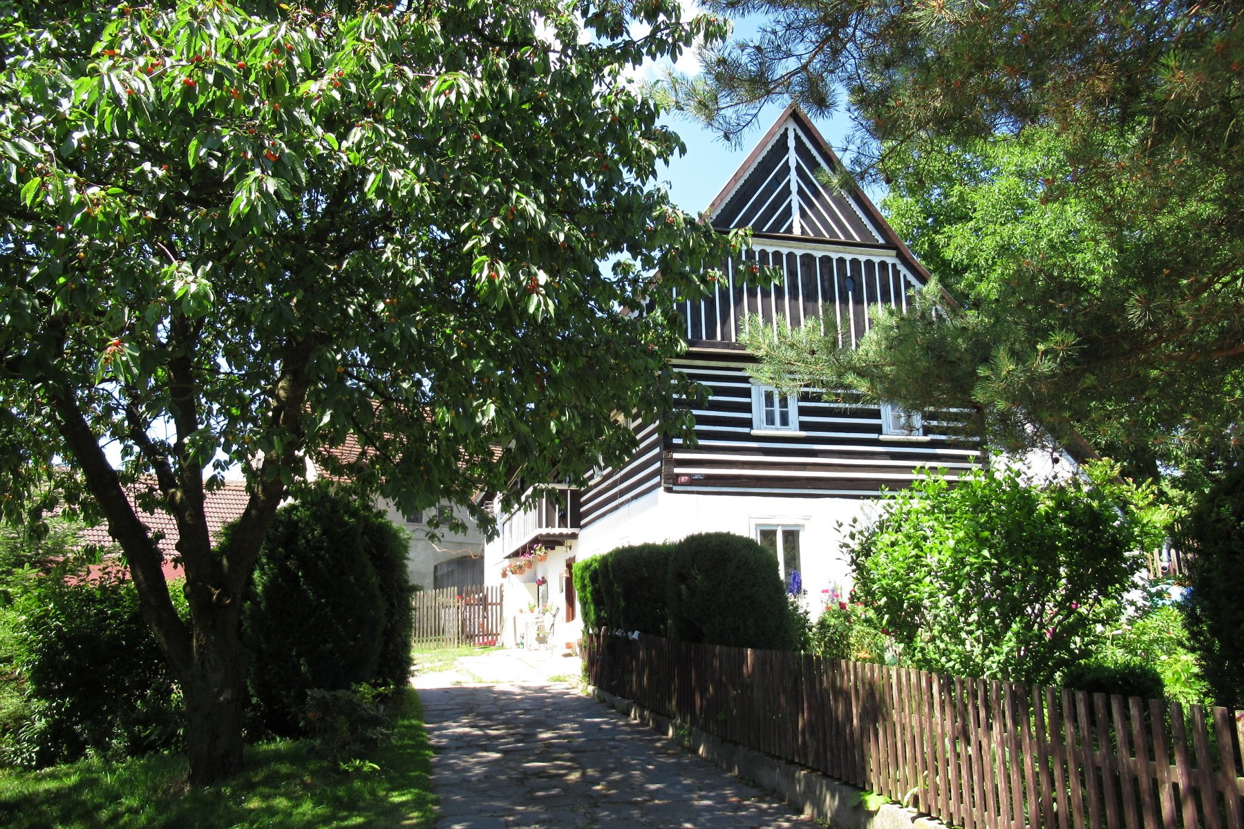 Parkovali jsme v centru v blízkosti zástavky autobusu. Je tu několik moc hezkých patrových domů s dřevěnými štíty, zahlédli jsme i jednu roubenku. Zámek i kostel skutečně moc hezky opravené, zatím nepřístupné. Tam je asi i 6 opravených soch. Cestou jsme však viděli menší či větší ruiny pravděpodobně hospodářských stavení, zdá se, že i tam se něco opravuje. Procházeli jsme okolo bývalého pivovaru, který z té vzdálenější strany má zachovalý barokní štít. Kdesi za ním jsme pak zahlédli pivovarskou věž s komínem.