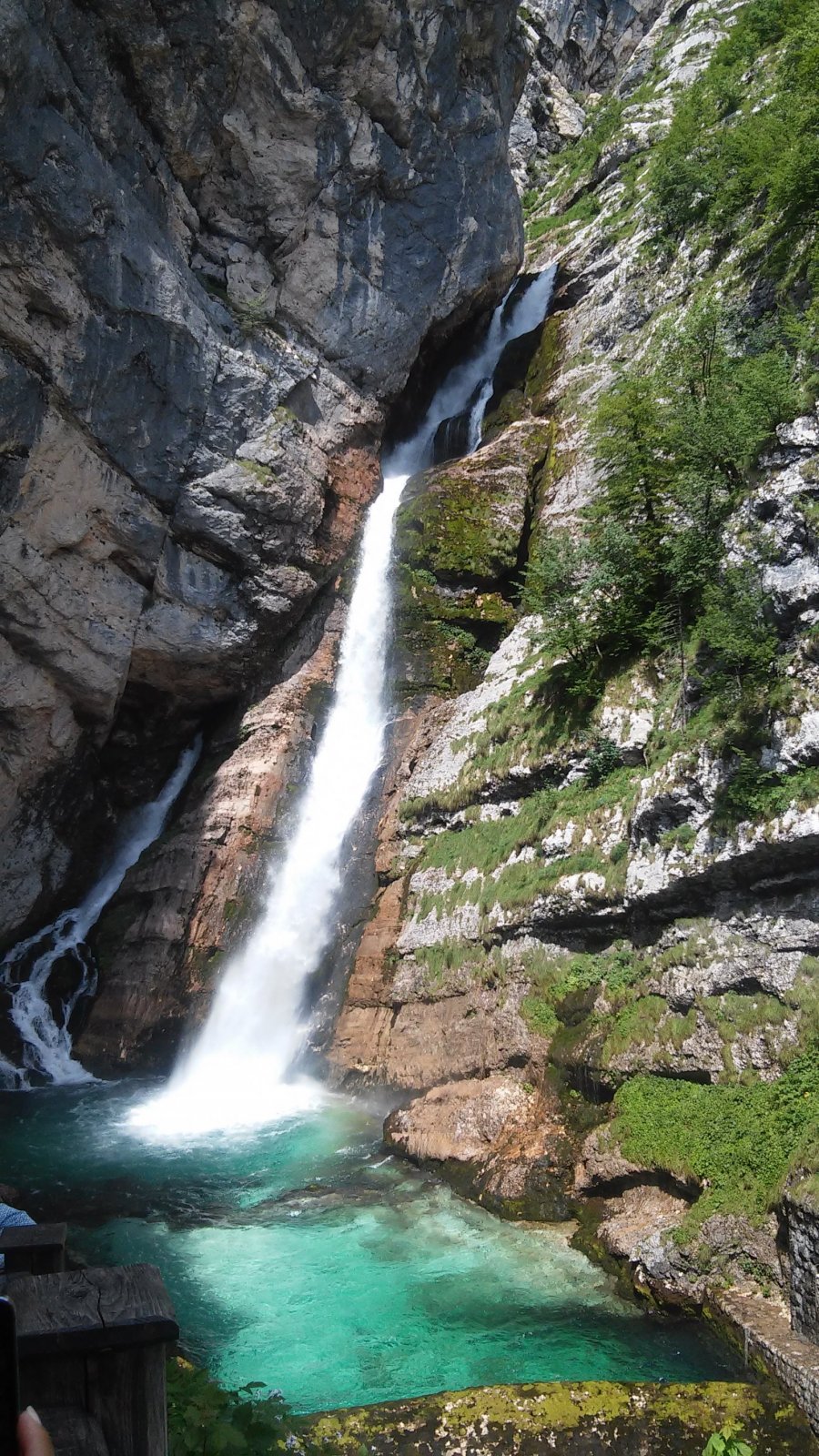 Následoval výlet k vodopádu Savica – u něj se nachází několik parkovacích míst bez placení a potom placené parkoviště za 3 eura. Po lehkém stoupání dojdete k pokladně, kde zaplatíte za vstup 3 eura za dospělého. Po cestě můžete vidět jezero Bohinj a na konci cesty vodopád Šum s krásně modrou vodou.