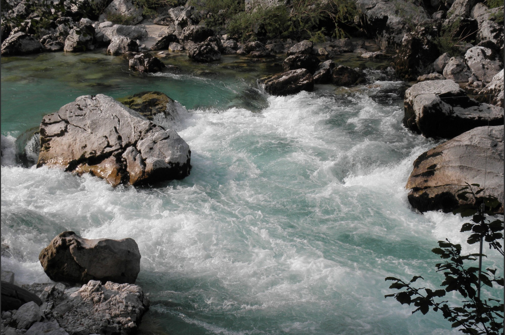 Peřej Zmuklica ve středním úseku řeky Soča.