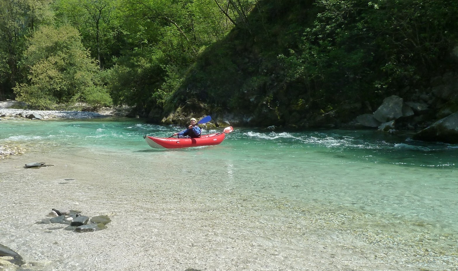 Střední úsek řeky Soča a nádherná příroda v okolí.