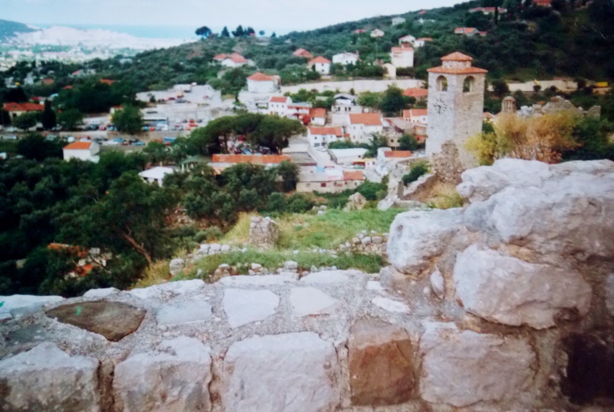Máme zde rozchod. Někdo se jde koupat, my procházíme staré město s hradbami a pevností na skále nad nádherně modrým mořem. V nové části města staví domy, hotely a penziony. Ještě na kopec s výhledem a odjezd k Albánské hranici.