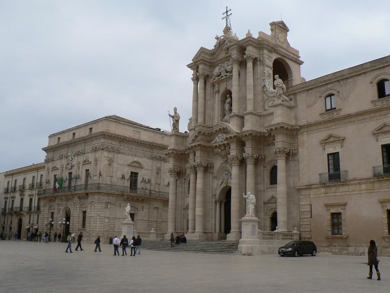 Ortygia je tím nejhezčím a nejzajímavějším, co lze v Syrakusách spatřit. Snoubí se tu starověk se středověkem a něco málo přinesla i doba nedávná. Na každém kroku turista narazí na cosi pozoruhodného a je pro mě udivující, jak tímto místem doslova proletí skupiny turistů. Pro nás se stal vstupní bránou do těchto míst Ponte Urbentino. Most ústí na Piazza Pancali, na jehož protilehlé straně je dórský Apollónův chrám ze 6. století p. n.l.. Patří k nejstarším řeckým památkám města a v době, kdy ještě stál to byla jistě nádhera. Nad chrámem, kromě několika domů, stojí malý kostel. Odtud pokračujeme po Corso G. Matteotti na Piazza Archiméde. Pohled na krásnou fontánu se sochou bohyně lovu Artemis a její doprovod s tryskající vodou nutí k delšímu zastavení. Lze využít i některou z kaváren na náměstí a v klidu si dopřát šálek kávy. V okolí náměstí je spleť uliček židovského ghetta. Jedna z nich končí na Piazza del Duomo. Tady stojí nejobdivovanější stavba města. Původně Athénin chrám z roku 480 p. n. l. byl v 7. století přestavěn na křesťanskou baziliku. Prastaré dórské sloupy jsou zastavené do zdiva katedrály, nesou její střechu a jsou dobře vidět jak uvnitř, tak i zvenčí. Chrám byl dvakrát poškozen zemětřesením a to v letech 1542 a 1693. Původní normanské průčelí se z části zřítilo. V letech 1728 až 1757 vyrostlo bohatě zdobené barokní průčelí. Na náměstí je několik paláců a kostel Santa Lucia alla Badia s expozicí obrazů malíře Caravaggia.