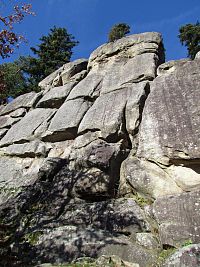 Z hradby výš k nebesům výrazně vystupují čtyři bloky – Hladká, Čertova stěna, Plochá a Kolébka, kterýmižto názvy byly obdařeny horolezci. Ti tady na stěnách mají už 84 vyznačených cest.