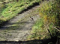 Po vyšplhání se chodníkem k poslednímu útvaru a výhledu na Lidečko Čerťáky opouštím. Další moje kroky vedly lesní cestou vstříc skalnímu uskupení na vrchu Láz a před tím, než začala komunikace stoupat, nepřeběhla mi přes ni srna, ale jedna mourovatá lidečská kočka!