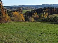 Jenže ani tohle panoráma není dokonalé a obdivovatele ruší jisté „nadbytečnosti“, jakými jsou např.dráty a sloupy el.vedení a z louky vyčnívající vzrostlé stromy. Tohle vše jsem ale dnes eliminoval chůzí po polní cestě, která napřed mírně stoupala pastvinou k východu, pak se již po vrstevnici stočila k půlnoci a na konci louky vbíhala do lesa. Přitom tady platila přímá úměra: čím výš jsem po lučině vystoupal, tím krásnější a ničím nerušený se mi z ní na Čertovy skály a jejich malebné kopcovité okolí otevřel pohled. Pochvaloval si jej i můj fotoaparát, neboť díky zoomu se mohl radostně polaskat i těmi největšími detaily skal.