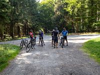 On je naneštěstí i nějaký výhled z naší cesty (po kůrovci), tak pokračujeme k Velkému Pařezitému rybníku a po té dál svižným sjezdem po cestě narýsované podle pravítka (v lese je schovaný Malý Pařezitý).