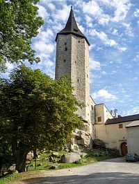 Ještě je před námi další stoupání pod hrad Roštejn. Bohužel je pondělí, tudíž si půvabnou lesní pevnost prohlédneme jen k vstupní části, ale dopijeme posledního Kozlíčka.