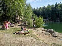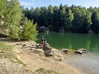 No není to žádný bazén, ale zatopený lom zvaný Čenkov (podle blízkého sídla). Ten je ale oblíbeným výletním místem nejen místních, ale i obyvatel vzdálenějších míst. Lom jsem už kdysi viděl při jednom z předchozích výletů do této části Vysočiny, to byl ale celkem chladný a deštivý den, nyní si můžeme konečně dopřát i trošku vodního osvěžení.