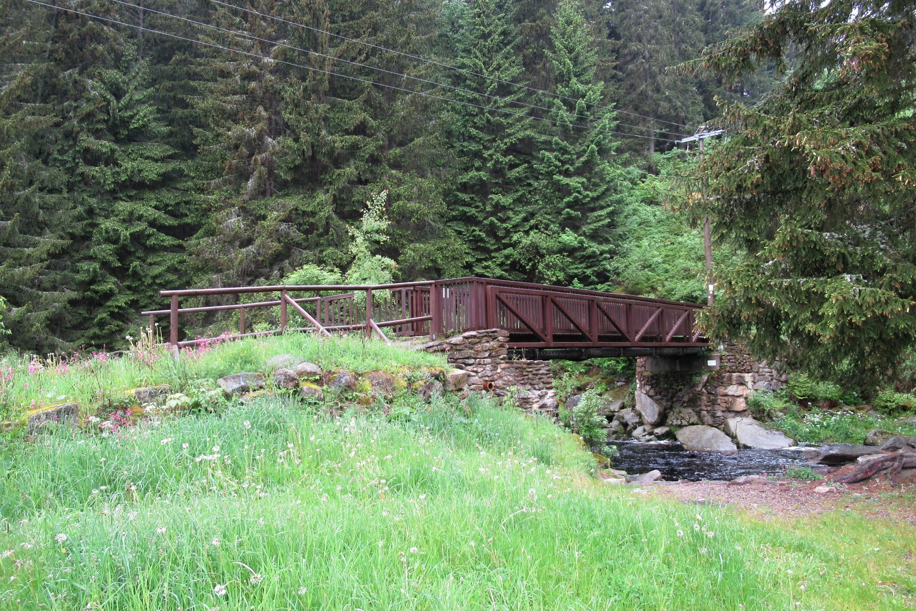 Přicházíme k obloukovému Klostermannovu mostu, který r. 2012 nahradil nedaleko stojící původní lávku, která zde stála už v době, kdy žil Karel Klostermann. Most pro pěší je dlouhý 30 m a široký 2 m.