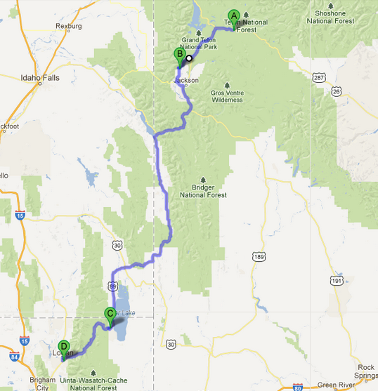 14.den 61 mil B-Jackson Lake, C-Jenny Lake, D-odbočka k Taggart L. autor: milousz