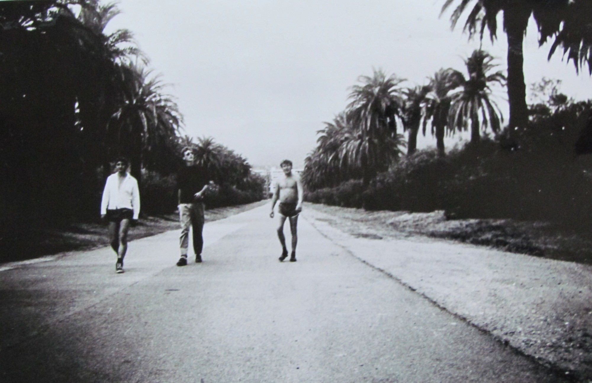 Pokračujem dál. Neco sa nám děje s vozem - nejak sa nám začíná přehřívat a tož zastavujem a idem na nejbližší pláž. Je ale zamračené, hrozná zima a tož sa zas ide kůpat enom Libor. Pak sa aspoň poumýváme pod plážovů sprchů a idem sa podívat do nádhernéj aleje s vysokýma - asi královskýma - palmama a u chodníka sú pohozené 2 karimatky. Pak jedem do blízkého lesíka a enom co sa utáboříme a vaříme si v kotlíku rýžu, tož sa tam objeví majitel pozemku s flintů a se psem a slušno nás vyháňá z pozemka. Snažím sa mu vysvětlit, ať nám dá půl hodiny, že sa napřeď najíme a tom on rozumí a tož sme domluvení...( Zatracené privat pozemky, to my z domu eště neznáme - u nás je zatým všecko všeckých a zatým skoro nigdo nemá Nic !) A tož rychlo dojídáme a přesunujem sa po lesní cestě asi o 1 km dál. Tam si otvíráme víno, bumbáme a kecáme...( Úplně sem zapomněl na to, že sme sa před S.Tropez stavovali v obrovském Supermarketu a nakúpili si tam levno vína a vína - ogaři dokonca jakési kostky po 5 l za cenu tří !!)