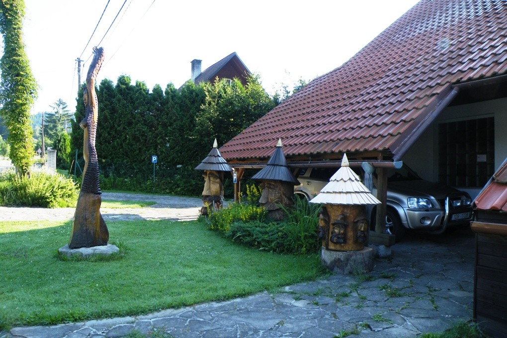 Ráno tady už nemáme kam jít, na obě strany hřebene jsme se už podívali. Přesouváme se tedy na třetí plánované místo – na Tesák. Je to už malinko blíž domovu. Dole, v Solanci si fotíme před jednou rustikální chalupou tři obrovské dřevořezané skřítky s jednou štíhlou dřevěnou sněhurkou. Na Tesák přijíždíme před desátou dopoledne už za pěkného vedra. Kvůli včasnému návratu domů už nebudeme dělat žádný dlouhý výšlap. Z parkoviště jdeme červenou TZ a současně NS Tesák na jih. Hned po 300 metrech proti nám přijíždí švadrona 12 jezdců na koních. Romantika. Kdysi jsem o tom snil, toulat se s koněm a přespávat s ním pod širákem. Nakonec chodím pořád jen po svých. Ale sny jsou také pěkné, někdy možná hezčí než realita. Od Kýčery měníme barvu na zelenou a máme první výhled. Výhledy do dálky jsou prý pro oči zdravé. Nemá se pořád jen koukat do blízka, např. do monitoru PC. Proto miluji hřebeny a hory. O kousíček vedle je výhled na Sv.Hostýn. Chtělo by to dalekohled. Ale kdo by se s ním nosil? Ten můj s poctivými skly váží ¾ kg a s foťákem skoro 2 kila. Dalším objektem je křížový kámen s vytesanými záhadnými pohozenými čtyřmi písmeny. Není o něm zmínka na mapě. Až na dalším rozcestí U Tří kamenů souhlasí název s počtem. Ve věku 23 let tu tragicky zemřela v únoru 1947 slečna z Kroměříže. Můžeme se jen domnívat, že v únoru bývá hodně sněhu a mohlo to spolupůsobit na tragedii. Toto divné místo má vliv i na mně. Z dosud neznámých důvodů odbočíme modrou doleva na jihovýchod. Už po necelém půlkilometru se nám vůbec nelíbí, že cesta značně a vytrvale klesá. Nelíbí se nám to, a ani nějak nesedí jak s papírovou mapou, tak ani s mapou v hloupém, pardon, chytrém mobilu. Na příštím rozcestí Pod Křížkem dumáme nad mapou, kam teď, když jsme zbytečně ztratili strašných 80 výškových metrů. Do toho, kde se vzaly, tu vzaly dvě staré jezinky. Evidentně v tomto začarovaném lese bydlely. Všechno věděly a znaly velmi podrobně všechny cesty a pěšinky. Ale byly milé, hodné a radily dobře. Teď je mi jasné, kam jsme odbočili, jen vůbec nevím proč. Nezbývá, než se do těch 80 metrů výšky znovu vrátit a zamířit zelenou na Holý vrch. Ten už není holý. Zpola dospělé stromy, zbytek mladé stromky. Ale nevypadá špatně. Je tu docela hezky. Jen žádný výhled. A na Klapinově je ještě krásněji. Zatravněná, svažující se planina. Také je tu stálý stanový přístřešek a Velké ohniště se sezením okolo. Vedle se popásají krávy. Mírný výhled do široka. Romantické místo. Trochu tady tápeme, kterou cestou odbočit. První pokus se nepovedl, po pár desítkách metrů to zjišťujeme a na potřetí objevujeme konečně tu pravou, dobře utajenou. Možná někdo ukradl strom se značkou. Nebo došla barva. Kdo ví. Ve vysokém, suchém lese asi není tak sucho, jak se nám zdá. Fotografujeme krásného skokana štíhlého a vzápětí k tomu i ještěrku obecnou. Od rozcestí Rožnovjačka se rozhodujeme navzdory vedru a dusnu vyšplhat děsný stoupák s převýšením 100m na kopec Obřany se zříceninou hradu. Z hradu toho moc nezbylo. Ani výhled nestál za nic. Škoda energie. Ačkoliv, dělali jsme to pro sebe, pro svou fyzičku. Petr si to jistě vynahradí týdenním sezením u počítače. A zase klesáme, navíc o dalších 160m až ke Kozlůvkám. Tedy dnes je to nahoru, dolu. A ten pařák! Čeká nás už jen poslední stoupání, ale nejhorší. Musíme od Kozlůvek vyšplhat na Tesák výškových 255m. Z toho některých hodně strmých. Cestou míjíme odbočku k autobusové zastávce Pod Valaškami. Skoro nahoře už málem padáme žízní. Machova studánka je však stejně vyschlá jako my. Konečně Tesák a parkoviště. Ani tady se nezchladíme. Na auto praží slunce, takže lezeme do sauny. A mrznout nebude a nebude. Přesto bych na závěr rád dodal, že se mi Valašsko líbí čím dál víc. Řekl bych, že v této oblasti se pro turistiku asi udělalo nejvíc. Nevím, zda si pochvalu za to zaslouží víc Valaši, nebo úřady. Závěrečný účet mazaného mobilu z dnešní procházky: celkové převýšení 1379 m, délka procházky 17km.
