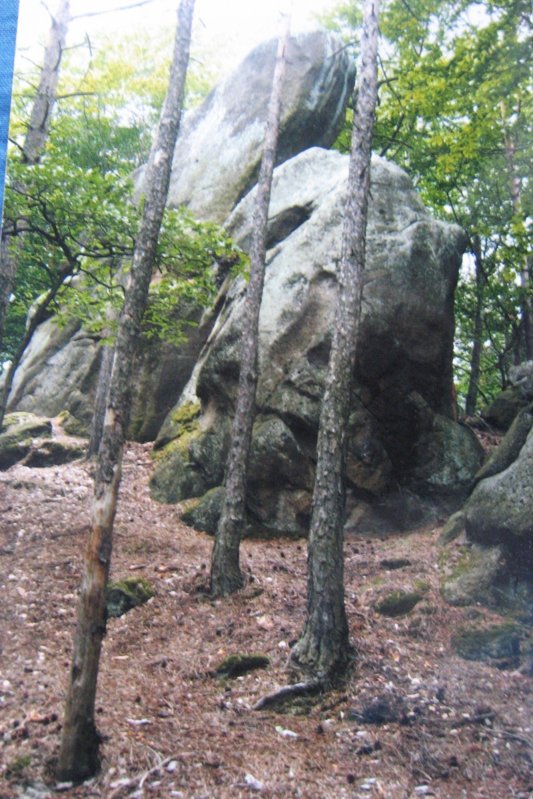 Skály jsou to rozlohově docela malé a ani jejich výška - ( do 7 m) - není bůhvíjak imponující, ale svou krásou a tajuplností se řadí mezi přední skály Hostýnských vrchů. A rostou na nich nádherně pokroucené reliktní borovice... Nadšeně fotím a velmi brzy mi dochází film, svačím a odpočívám a vychutnávám si krásu tohoto přírodního zákoutí. ( To samé asi dělal a pak na památku podle hesla "Jména hloupých na všech sloupích" vyryl do skalní stěny letopočet 1928 tehdejší milovník přírody...)