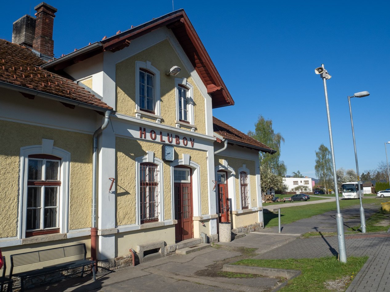 Ta za areálem místních hasičů odbočuje z místní komunikace a příjemnou pěšinou míří vzhůru ke Krasetínu, který je ovšem částí Holubova. Dál se ale značka opět drží místní silničky kolem další osady Podluží ke stanici lanové dráhy. No úplně zadarmo to taky nebylo, od nádraží se musí překonat necelých 200 m na nějakých třech kilometrech.