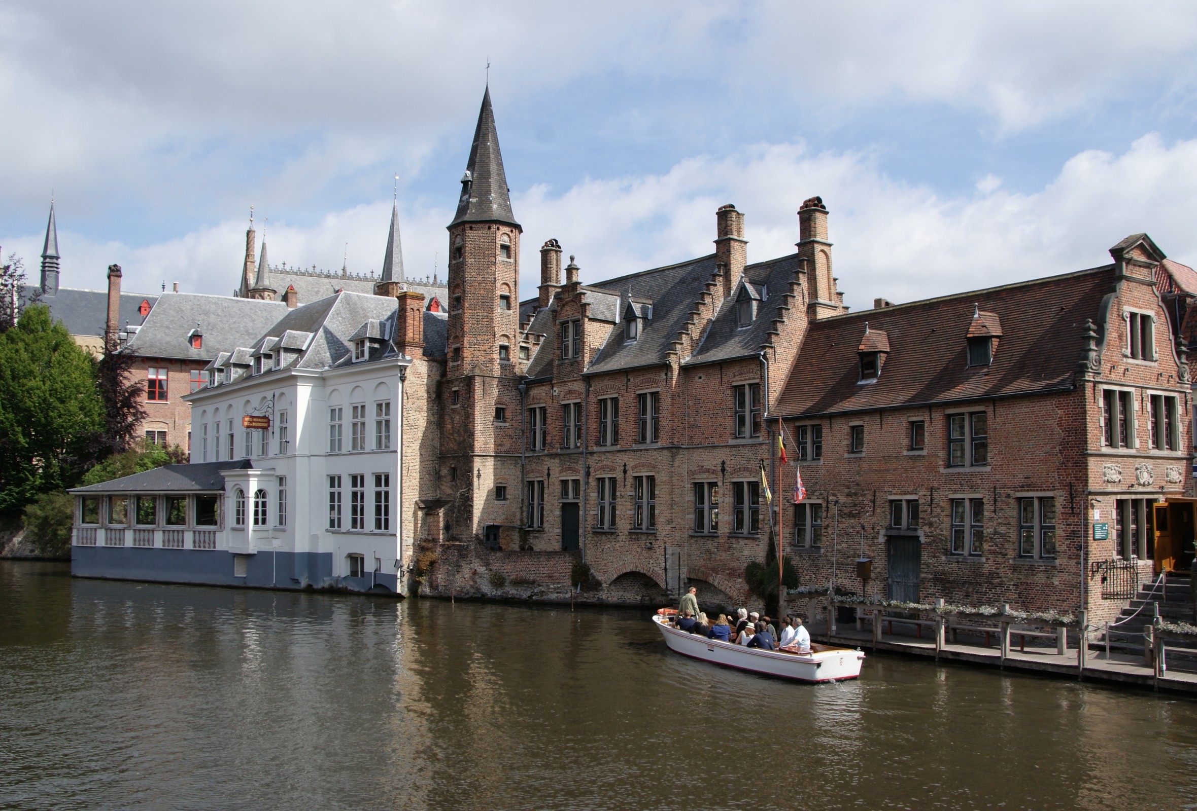Byla to, samozřejmě, nadsázka a vtip, ale svůj – nijak neplánovaný – účel splnila dokonale. Janu to pobavilo a já nemusel skrývat trhliny ve vědomostech. V každém případě jsme prošli střed města a objevili přitom jeden ze slavných bruggských historických chudobinců. Jednalo se o Godshuis Sint Jozef ze 17. století a tento hospic byl skutečnou oázou klidu a míru. Jenom čas už nebyl, Jana si chvíli poseděla a čerpala energii, já pořídil pár fotografií, a pak už byl čas jít „na lodičky“, samozřejmě za 8 euro. Prodejna lodních lístků byla umístěna stylově na kamenném mostku přes kanál, na kterém se tyčila – v Bruggách trošku překvapivě – socha našeho Johánka z Pomuku. Většina výpravy zde už byla, takže jsme se dostali až do druhé lodi. Plavba byla fajn, dokonce i části výkladu v angličtině jsem rozuměl, ale že bych si zdejší architekturu prohlédl až tak moc z jiného úhlu pohledu než z pevniny – jak nám bylo slibováno – to bych neřekl. I když možná ano … v každém případě vím, že pokud Bruggy ještě někdy navštívím, „zaplavu si“ znovu.