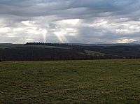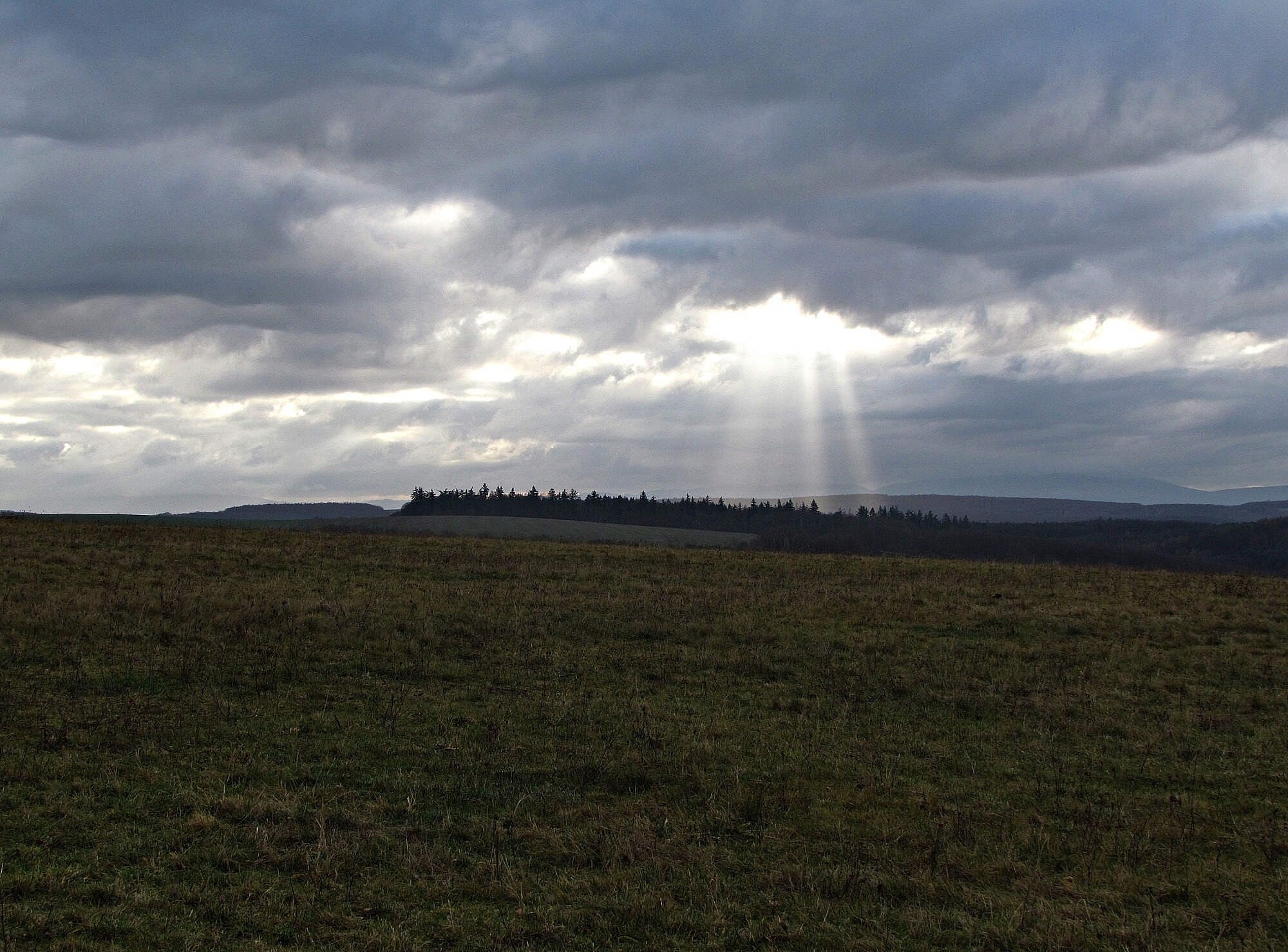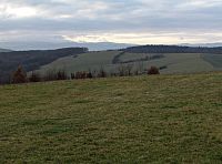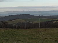 Ačkoliv jsou Kelníky „vyvýšenou“ obcí rozkládající se na hřebeni jižní části Vizovických vrchů naproti Velkému Ořechovu, nadmořská výška 340 m nesváděla k příliš optimistickým představám dálných výhledů. Po obhlídce kamenného kříže za dědinkou ale začala polní cesta vinoucí se mezi okolními pastvinami více klesat a přede mnou se náhle otevřelo široké panoráma. Zahrnovalo nejen celý zbytek jižní části Vizovických vrchů, jež se zove Prakšickou vrchovinou a jejíž poslední úpatí jsou omývána vodou Olšavy, ale poskytlo také pohled na modravé pásmo Bílých Karpat, tyčící se na obzoru nalevo a naproti za ní. Při mé návštěvě Kelníků bylo bohužel nebe pokryto mraky nízké oblačnosti, která se nad Karpaty jen velmi pomalu rozpouštěla. Přestože nejvyšší temena hor ještě tonula v oblacích, sluneční paprsky se již intenzivně draly jejich skulinami a dávaly tušit, že se původní meteorologická předpověď krásného slunečného prosincového dne za hodinku za dvě přeci jen naplní. Tolik času jsem bohužel neměl, ale ještě předtím, než mé nožky zamířily po hřebeni stále dolů až do v údolí rozložené obci Částkov, očička převelice potěšil pohled k západu, kde nad sníženinou Moravy vystupovala dlouhá a už nijak nezamlžená impozantní hradba Chřibů s Holým kopcem, Modlou a hradem Buchlovem.