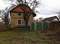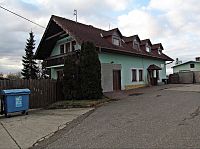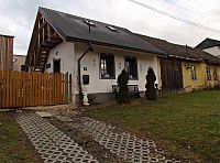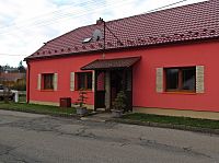 Při pochodu přes dědinku jsem viděl zajímavé staré stodoly i bývalé grunty (některé už i s novou přístavbou) a za areálem firmy jsem u cesty klesající mezi pastvinami narazil na další, velmi pěkný kamenný kříž. Jeho podstavec zdobí pozlacená plastika Madony a nahoře je na jedné straně umístěn reliéf hlavy anděla s doprovodným rostlinným motivem a na straně druhé reliéf dubového listu, hroznu vína, větvičky a kalicha. Tento kříž nechali roku 1932 vystavět manželé Jan a Marie Grecůrkovi z usedlosti č.8.
