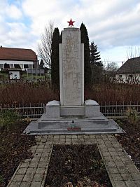 Další mé kroky vedly po chodníku vedle silnice protáhlou návsí ke dvěma pomníkům, mezi nimiž byl pás země parčíkově upraven. První hezčí pomník je věnován obětem I.světové války, ten následují padlým a válečným obětem ve světové válce druhé.