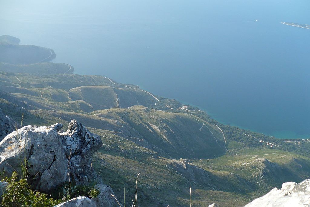 Na letošní dovolené , kterou jsem s rodinou trávil v Chorvatsku, jsem se rozhodl vystoupit na nejvyšší vrchol pohoří Rilič( které je jakýmsi pokračováním Biokova), 1155m vysoký Sutvid. Celé pohoří se tyčí nad mořem jako obrovská hradba , která se zdá být nepřekonatelnou a nedostupnou. A to mne lákalo. A nejen to, také zvědavost,co se skrývá za horami mne dodávala touhu vydat se na cestu. Asi po týdnu, kdy vrcholy hor zakrývaly mraky a denně je bičovaly bouřky, přišel den s předpovědí dobrého počasí.Vstal jsem brzy ráno a za úsvitu vyrazil. Sebou jsem měl jen tři litry vody, pár sušenek a fotoaparát. Na nohou dobré boty a vrukou turistické hole. Počátek mé cesty byl v kempu Dole v Živogošči ve střední Dalmácii. Vyrážím do hor, které vůbec neznám . Jdu pěšinou do první vesnice pod horami. Její jméno je Strnj a patří k Živogošči . Jen štěkání psa dává tušit, že zde bydlí lidé. Chodníček mezi domky, místy rozbořenými působí stísněným dojmem. Z vesnice začíná stoupání vzhůru kolem jeskyní, které slouží jako stáje. Nikdy jsem tam žádné zvíře neviděl, ale podle trusu usuzuji, že jsou používány. Krátce se zastavuji u pomníčku českého turisty, který ve zdejších horách zahynul . Za pár minut narážím na zcela rozbořenou osadu Kolovrat. Pár domků, které vroce 1962 poničilo zemětřesení již nikdo neopravil a obyvatelé se odstěhovali. Za osadou cesta prudce odbočuje vpravo a stoupá po kamenném svahu vzhůru do sedla Prosik. Dusání kopyt a zvuk padajícího kamení mi nahání strach. Za stromem vidím kamzíka, který je zřejmě ještě vyplašenější než já a mizí ve skalách. Pod sedlem se zastavuji a nechám se unášet nádherným pohledem na pobřeží , ostrov Hvar a poloostrov Pelješac. V sedle Prosik se mi otevírá pohled i na druhou stranu hor, pohled na údolí a hory chorvatského vnitrozemí. Červené turistické značení udává směr po balvanech stále vzhůru. Občas se zastavuji, abych se pokochal tou nádherou kolem. Můj postup vzhůru připomínal spíš chůzi slepce. Hůlkami klepu do kamení, abych vyplašil hady, kteří se zde na sluníčku vyhřívají. Před devátou hodinou vítězně stanu na vrcholu Sutvid skótou 1155 m.n.m. Udělám vrcholové foto a přemýšlím jak a kudy dolu. Pomyšlení na sestup stejnou trasou po hřebeni z rozpáleného kamení mi nahání hrůzu. To, co bych nikdy nečekal se stalo. Pod vrcholem se objevily dvě postavy. Turisti, muž a žena. Pozdravili jsme se, a dali se do řeči. Byli ze Slovenska a poradili mi cestu druhou stranou dolů, která nebyla tak náročná. Ještě posílám SMS manželce o mém dalším postupu pro případ nějaké nehody ( doposud jí ta zpráva nedošla) a vydávám se na cestu. Jde to dobře. Na obrovských balvanech hledám značky abych se neztratil. Po necelé půlhodině mám strmé klesání za sebou . Zmalého sedla odbočuji z hřebene vlevo a po kamenité pěšince pomalu klesám. Pode mnou se otevírá pohled na Porat, Malou Dubu a Igrane. Nedaleko osady Murava, ve které je na malém hřbitově uktytém ve stínu tisíciletých cypřišů hrob údajně posledního chorvatského upíra, se napojuji na cestu. I když mi značka velí jít po malé pěšině, jdu pohodlnější, leč delší cestou . Přicházím do Strnje, který mi už nepřipadá tak strašidelně jako za úsvitu. Dopíjím poslední doušek vody a cestičkou, na které začalo mé putování sestupuji do Blata. Do kempu přicházím k obědu. Krásně unavený a šťastný znávratu. Říkám si, že jsem blázen, trmácet se po horách když ostatní leží na pláži, ale to , co mne nahoru táhne se dá jen stěží popsat.