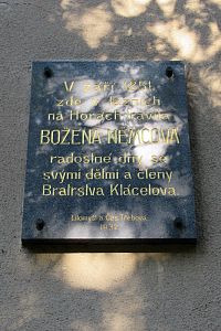 Je umístěna při hřebenové žlutě značené turistické cestě vedoucí z letoviska Hory u České Třebové k silnici do Kozlova. Z ústního vyprávění měla právě zde na lavičce, která zde i v minulosti byla, sedávat pod prastarým bukem slavná spisovatelka při svém pobytu Na Horách v létě 1851.