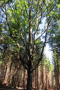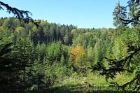 Odtud pokračujeme vlevo stále po zelené na rozcestí Kozlov - bus. Jdeme již téměř po rovině jen s nepatrným převýšením - tím přecházíme dnešní nejvyšší bod. Závěr je po sluníčku, což jsme docela uvítali. V lese už nám začínalo být chladno.