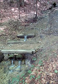 Pokračujeme po modré na nám známé rozcestí Uhrovy doly a po zelené k autu na parkoviště. Ota bere pár lahví a jde pro vodu, ať máme na pití dobrou pramenitou. Moc jí nepotřebujeme, v úterý musíme být doma.
