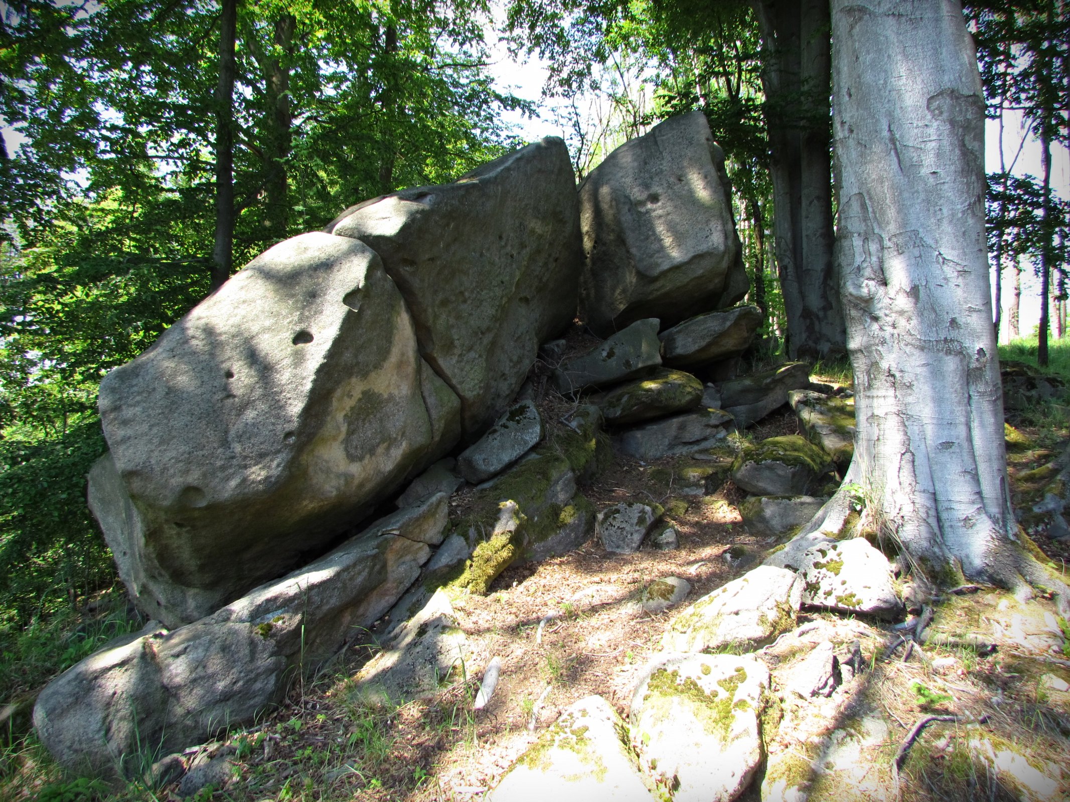 Z Držkové přes skály pod Kuželkem na zříceninu Lukova
