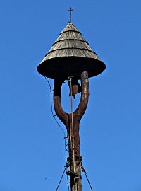 Nad lačnovskou školou stojí napravo u silnice objekt obecního úřadu, nad ním obchod „CBA Market Lačnov.“ a o kousek dál vlevo jsem minul roubenou zvonici.