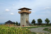 Příspěvky z okolí Z Javorníků přes Přerov domů - 4. den - okruh 5,5 km: Tučín - rozhledna Římská věž - NS s Tučňákem za poznáním (rybníček Plavisko s altánkem, kovová vyhlídka, discgolf, bývalý větrný mlýn s vyhlídkou, bývalý travertinový důl a další památky obce)