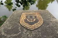 Procházíme se zahradou, chceme odejít přes lávku a přes poloostrůvek. V blízkosti rybníka je z keramických dlaždic udělaná brána. Byla vyrobena r. 2021 v rámci akce Dobrý den, keramiko. Polostrůvek je upraven jako malý odpočinkový parčík.