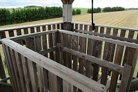 U rozhledny je malá bílá stavbička. Oba si myslíme, že je to malá kaplička, která se dívá do údolí směr město. Je to vysoký bílý hranol se stříškou, nemá žádnou niku. Na jeho jižní straně je připevněný kameninový křížek a na něm upevněný věnec z proutí. I takhle prý vypadají boží muka.