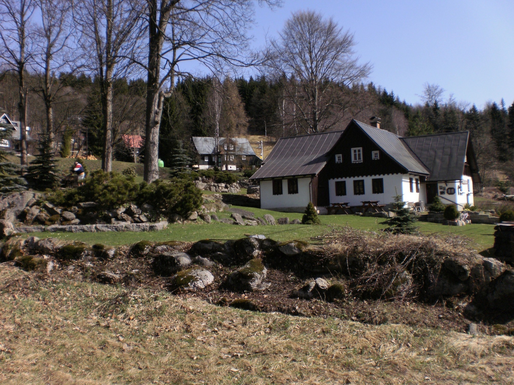 Kořenovskému nádraží vévodí polorozpadlá rotunda bývalé výtopny, kde kdysi mělo být (nebo i bylo železniční muzeum) a kde se jednu zimní sezonu pod tíhou sněhu propadla střecha. Malé železniční muzeum zde sice v budově stanice je, ale protože balo po sezóně zimní a teprve před sezonou letní bylo zavřeno (otevřeno až od června). Vyšli jsme z nádraží a vydali jsme se po zelené značce směr Souš. Značka ná vede přes železniční přejezd k zatáčce, kde opustíme silnici a přes louku u jednoho z místních domů a po stezce vyšplháme k další silnici. Míjíme na stromě přibitou turistickou mapu, dle vyšisovaných barev patrně z nějakého hotelu ze 70 let. Po silnici se dáme vlevo a po několika stech metrech opět vlevo po místní silničce. Ta nás vede mezi samotami a penziony (sem tam je otevřená restaurace). Silnička ná vede mezi loukami až do Horního Polebného. Projdeme kolem kostela, a asi po 200 metrech uhýbáme z hlavní silnice na místní cestu, která nás vede nejprve mezi samotami, potom lesem a končí u silnice v místě zvaném Souš.