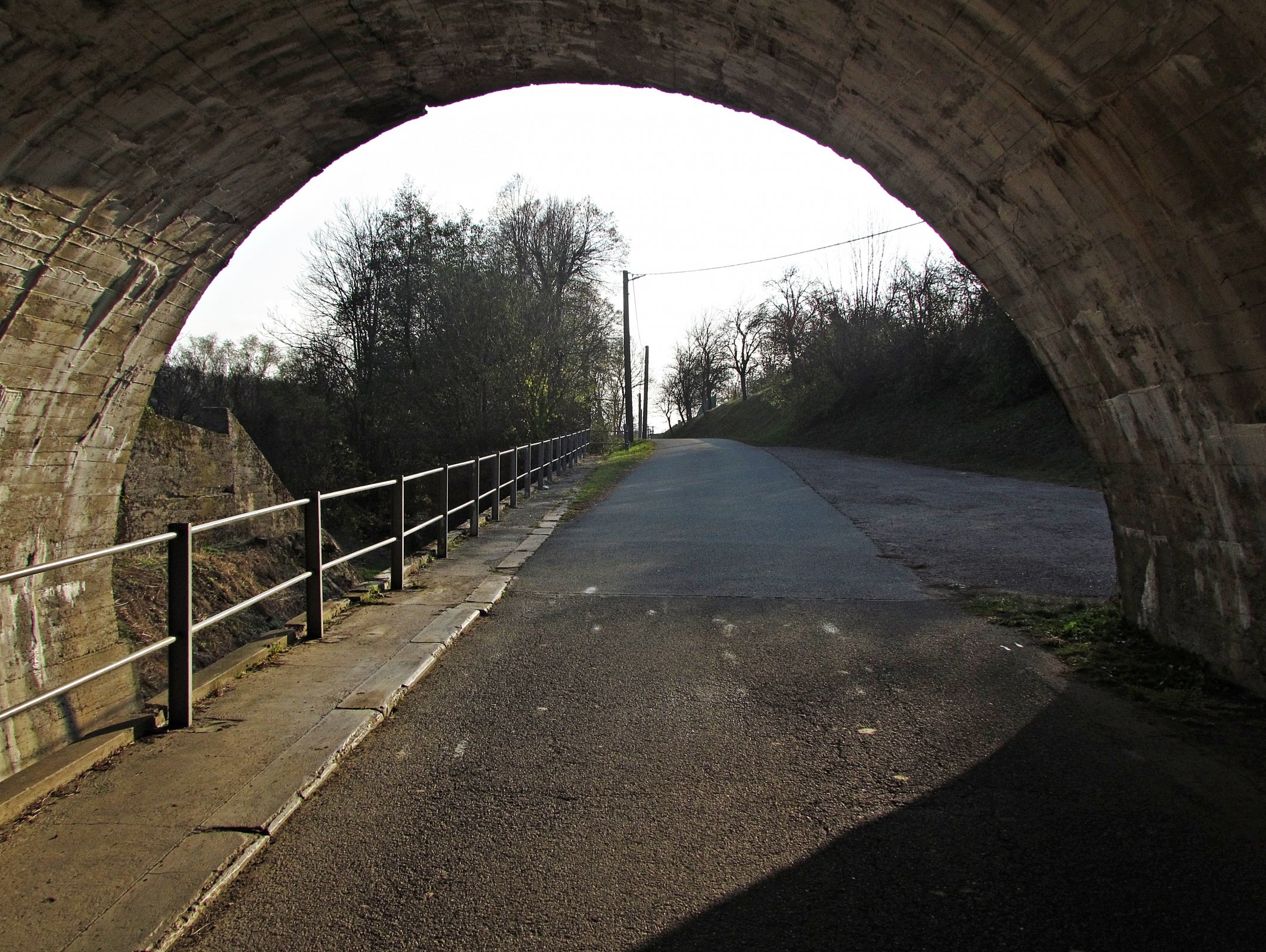 Volně přístupným sadem jsem po travnatém náspu směrem na západ prošel asi ke čtvrt kilometru vzdálené propusti a odtud po pár minutách chůze přišel ke druhému mostu, jehož oblouk překlenuje místní komunikaci i spolu s Ludkovickým potokem. (Na jeho protilehlý břeh jsem přitom pohodlně dostal přes ocelovou lávku.)
